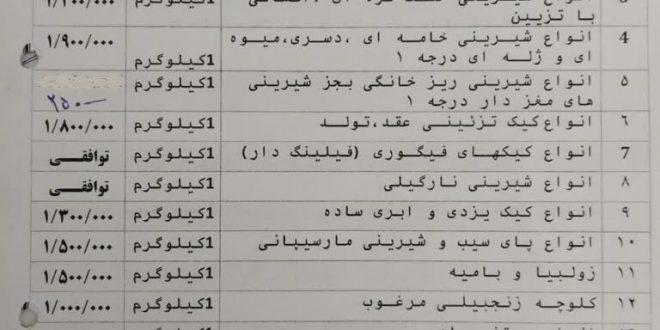 بنا به گزارش پایگاه خبری روستای قوژد ؛ محمد اشرفی با بیان اینکه به استناد مصوبه کمیسیون نظارت شهرستان، نرخنامه جدید انواع شیرینی خامه ای، خشک، خانگی، کیک و… در واحدهای صنفی قنادی به تصویب رسیده است، افزود: نرخنامه پیشنهادی اتحادیه صنف قنادان، در کمیته نرخگذاری به تصویب رسیده است.